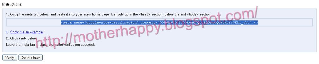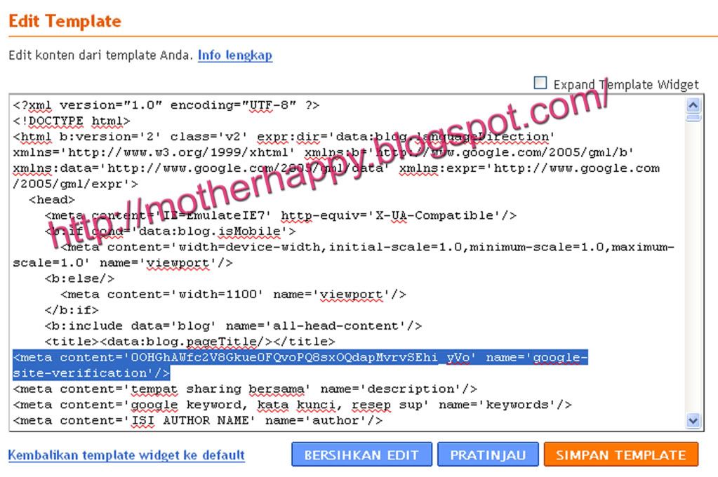 Klik gambar untuk memperbesarKemudian masukan dan simpan meta name verifikasi yang tadi kita copy seperti gambar dibawah ini :