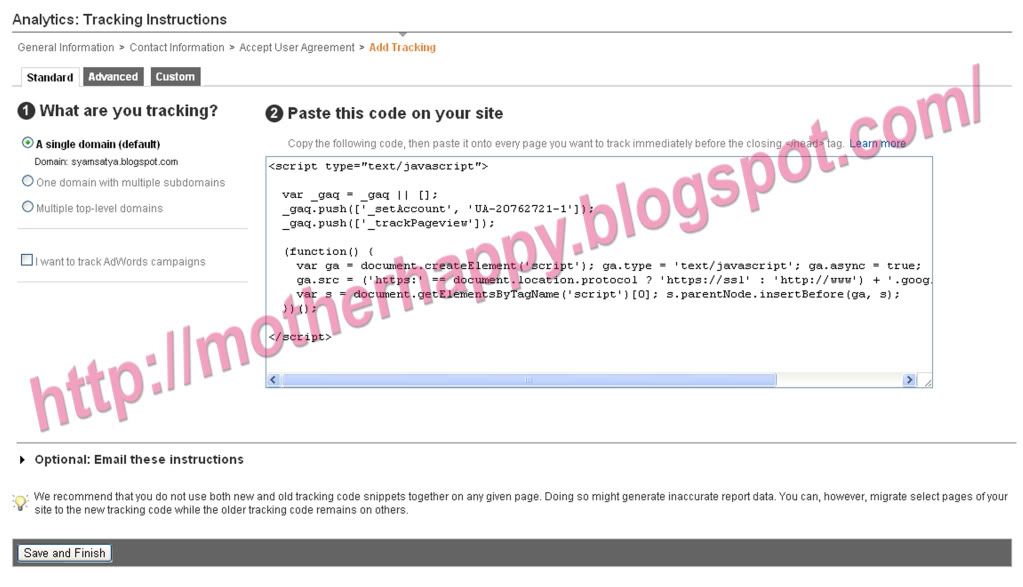 Kembali ke Halaman Google Analytic lalu Save and Finish
