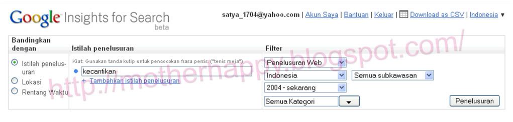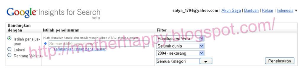 Berikut ini saya akan membagi ilmu nya dengan menggunakan http://www.google.com/insights/search