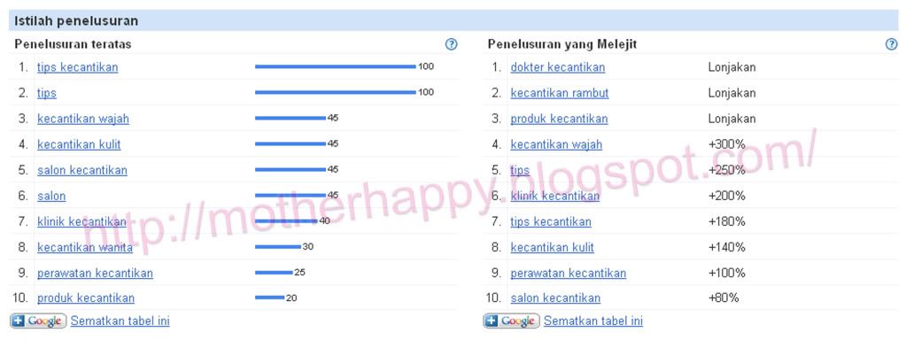Pada kolom Istilah Penelusuran isi dengan Kata Kunci (keyword) yang akan kita buat (kali ini saya akan membuat tentang Kecantikan). Lalu Klik Penelusuran